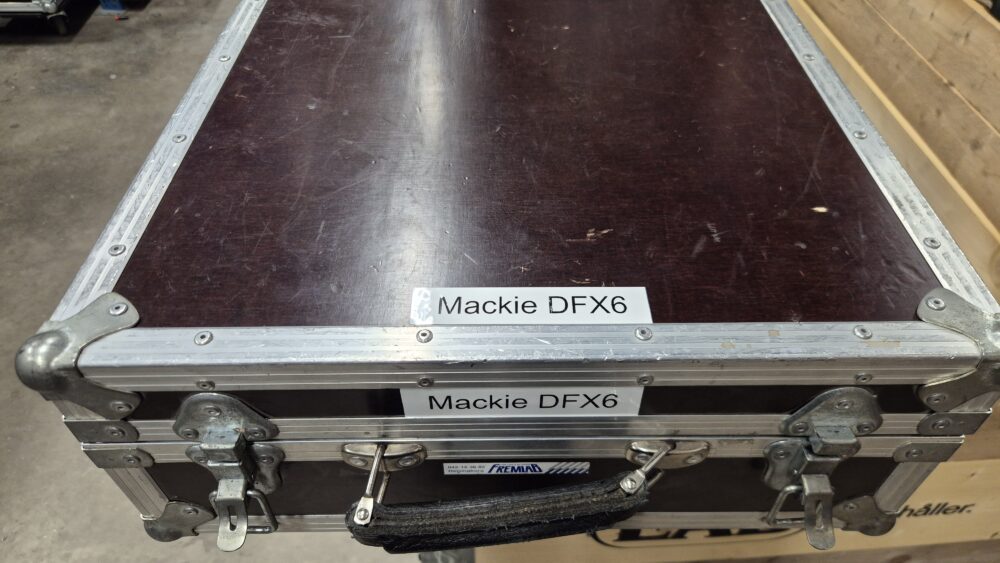Mackie DFX6 analog mixer med inbyggda effekter. Flightcase ingår.
